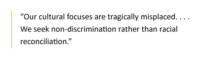 So I am convinced that our cultural focuses are tragically misplaced. We celebrate diversity without celebrating the differences; we promote tolerance instead of cross-cultural relationships; we seek non-discrimination rather than racial reconciliation. We value the concepts over the people.