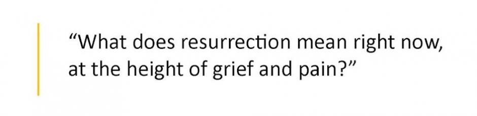 My friend, her husband, and Graham should be experiencing life in all its fullness—discovering their passions, using their gifts, forming new friendships. What do we do when what should not be (death and excruciating pain) eclipses what should be? And what does resurrection mean right now, at the height of pain and grief?