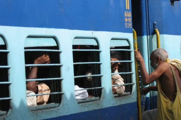 The train was taking almost twenty to thirty minutes to leave, when a man walking on his two hands and one foot, went onto the ladies’ train car.