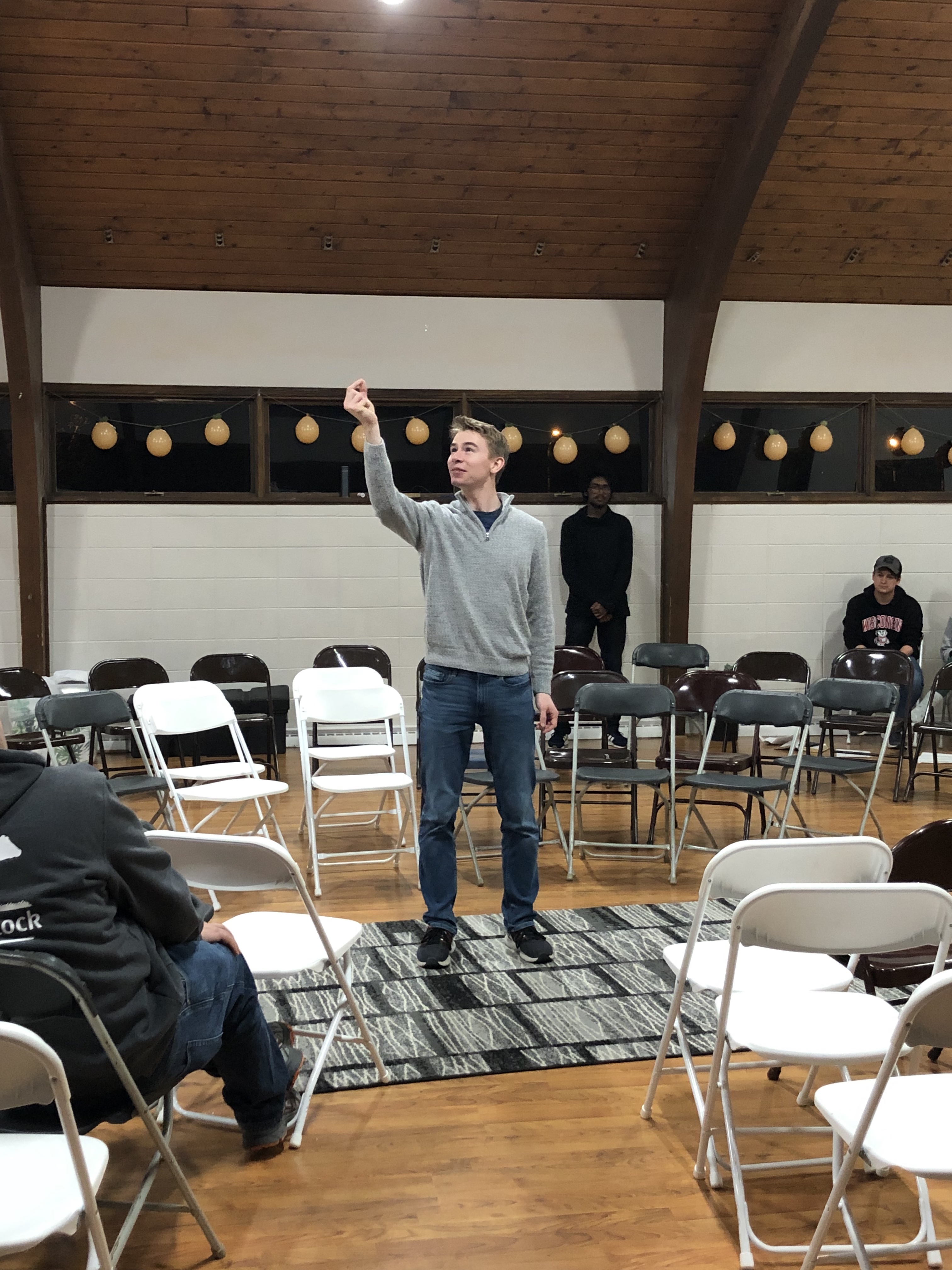 John Florey, a Campus Staff Minister from South Dakota and one of the four Directors of “The Mark Drama,” spent the previous weekend working with these students to get them ready for showtime. Before the play began, I sat analyzing the space, wondering how a group of students, with only 13 hours of practice, could tell the most important story of all time and tell it well.