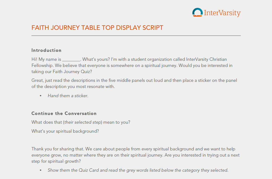 A script for using the Faith Journey Table Top Display to start spiritual conversations